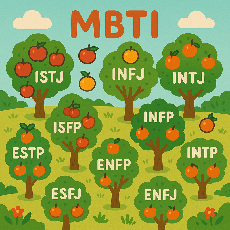 ‘과수원 심리테스트’의 가장 흥미로운 부분은 결과가 MBTI 유형과 연결된다는 점이에요. 단순히 재미로만 소비되는 게 아니라, MBTI 프레임을 기반으로 자신의 성격을 조금 더 객관적으로 바라볼 수 있도록 돕습니다.